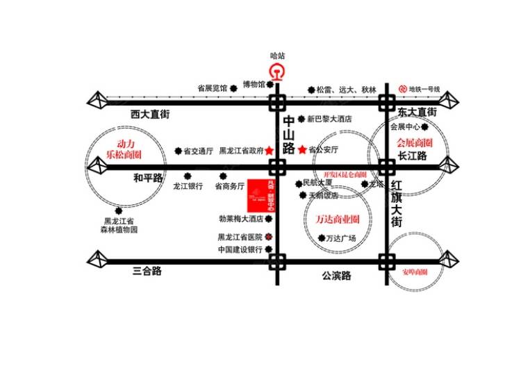 凡奇财智中心写字楼项目位于哈尔滨市中山路上(与珠江路交口处),北临松雷大厦、东临天鹅饭店(省旅集团)、南临渤莱梅大酒店。重点校风华校学区。临近学校、医院、大型商超、万达商圈,要有强大的综合配套,经营成一个集写字楼、商住公寓、酒店、会展中心、休闲娱乐及购物中心于一体的城市功能区。以凡奇﹒财智中心为圆心,一公里内即有天鹅饭店、渤莱梅大酒店、香坊万达商圈、家乐福超市。另一方面,还要视其交通条件而论,四通八达的交通是其写字楼规模的支撑。凡奇财智中心所处位置公交线路多达十几条。