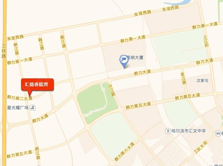 汇锦香槟湾位于道里群力新区朗江路与群力第二大道交汇处,售楼处位于朗江路与群力大道交汇处向北200米,项目地上建筑面积:206000㎡;地下建筑面积:49315.9㎡, 住宅157389.72平米。