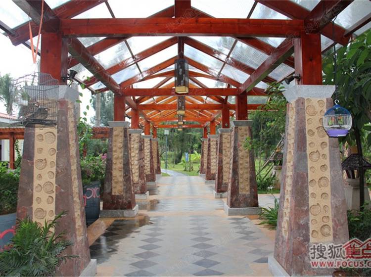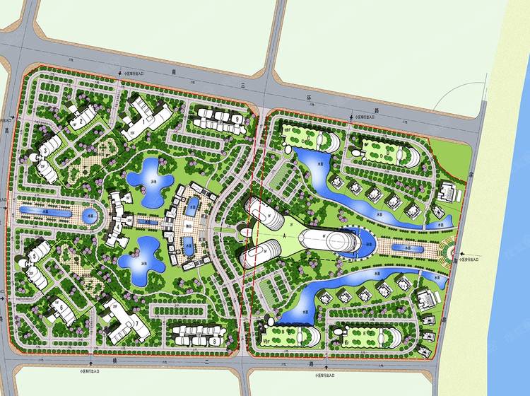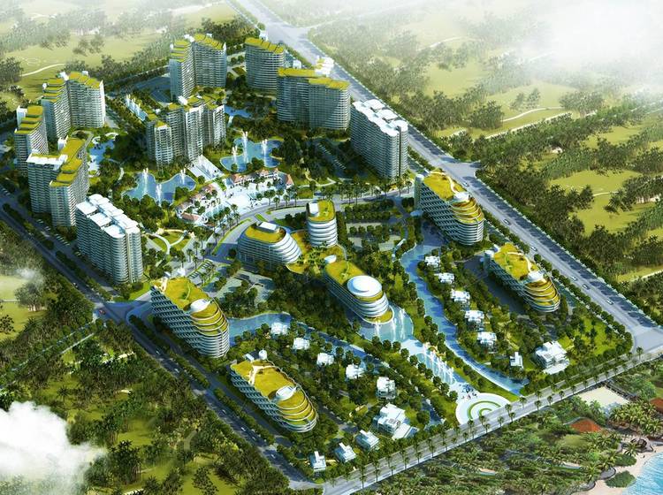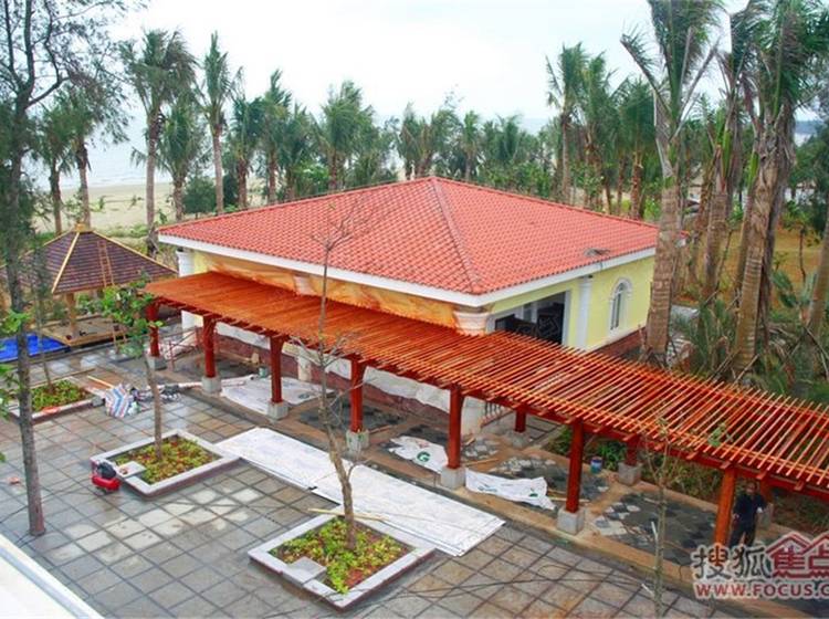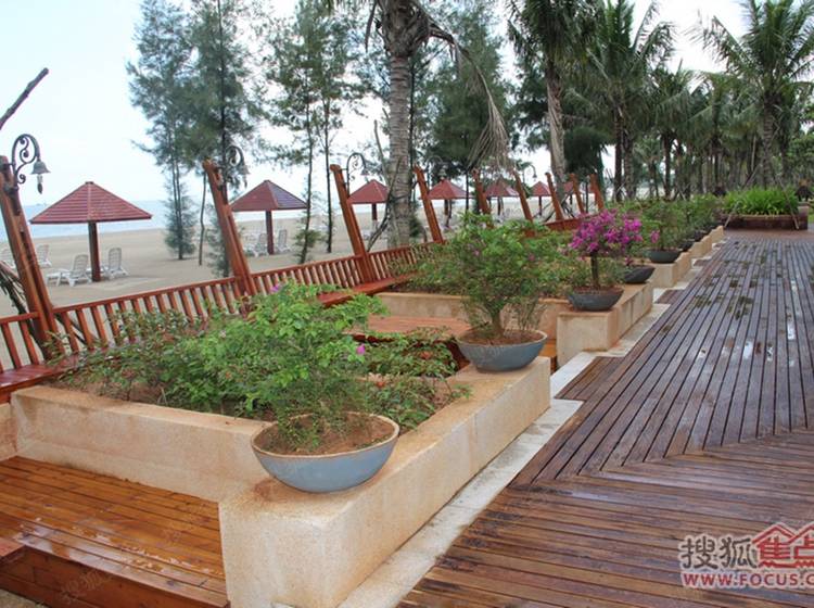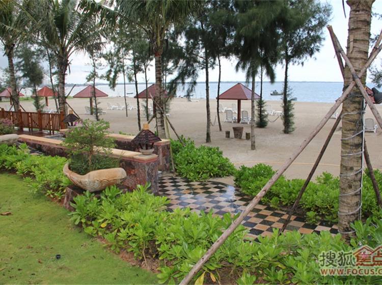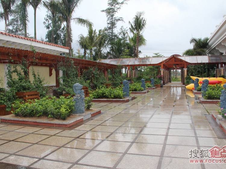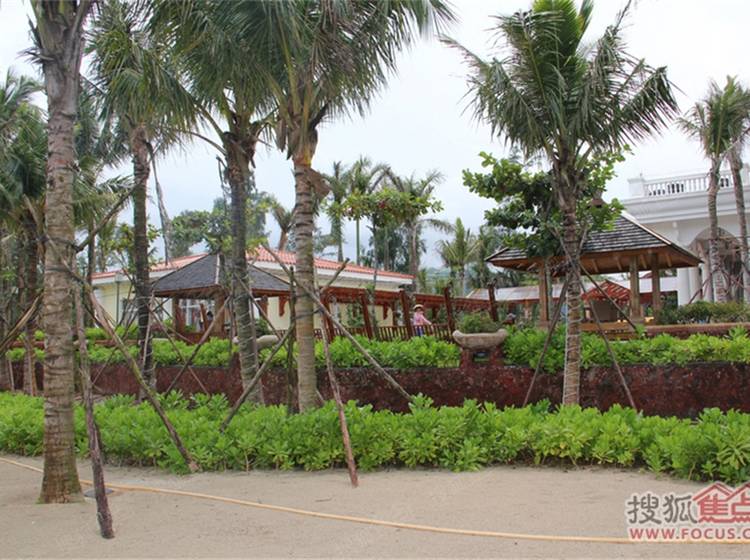下沉式商业休闲广场、国际标准泳池、景观泳池和水疗中心、不同功能的温泉泡池、东南亚沙滩主题公园、瞭望亭、小区休闲会所、停车场、烧烤亭、舞台、漂浮码头、健身广场、椰林小路、服务台、沙滩排球等