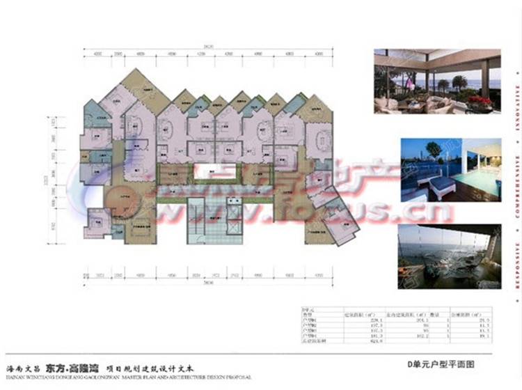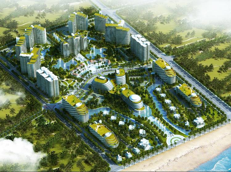 东方龙湾是一个大规模的复合型滨海社区。总占地面积23.8万平方米,建筑面积约40万平方米,容积率仅为1.33,绿化率高达52%。共分三期开发,由9栋高层公寓,4栋产权酒店,1栋酒店和16栋别墅组成。项目采用滨海现代建筑风格,简约,流畅,充满艺术感。整体的楼座呈散点式的分布。公寓,酒店和别墅错落排布,楼间距较大可达70米,保证每一栋良好的通风和采光,楼栋之间高低区隔,同时又将东面的海景引入社区,与项目内12万平米的园林景观相呼应。结合项目东侧的海景,蓝天白云,海洋沙滩,园林水系有机结合,形成了社区独特的立体景观,做到了一户一景,户户有景,步移景异,实现“将大自然搬回家”的生活意境。