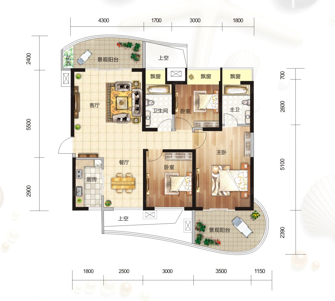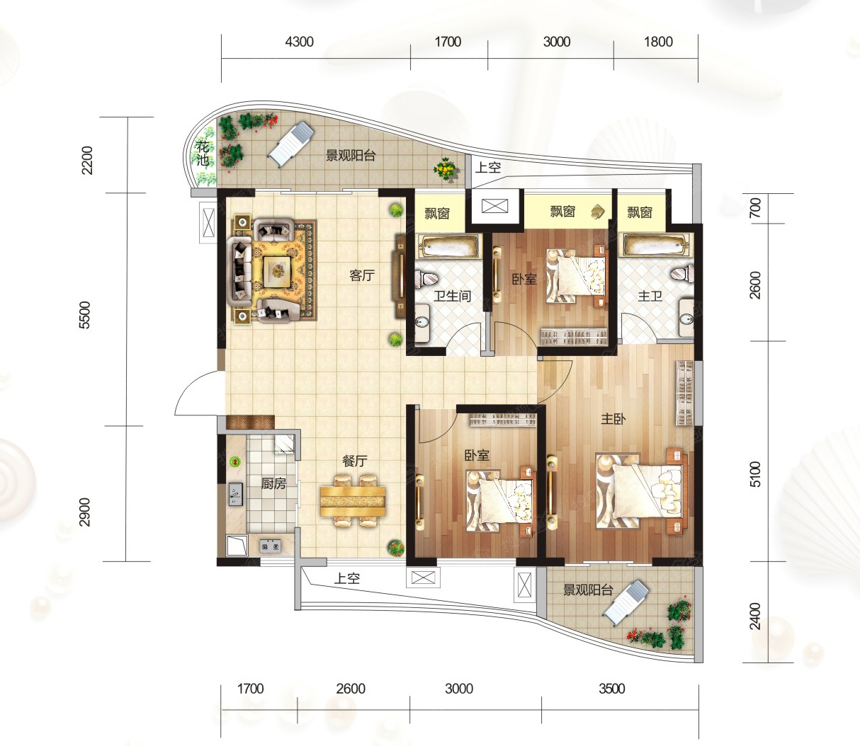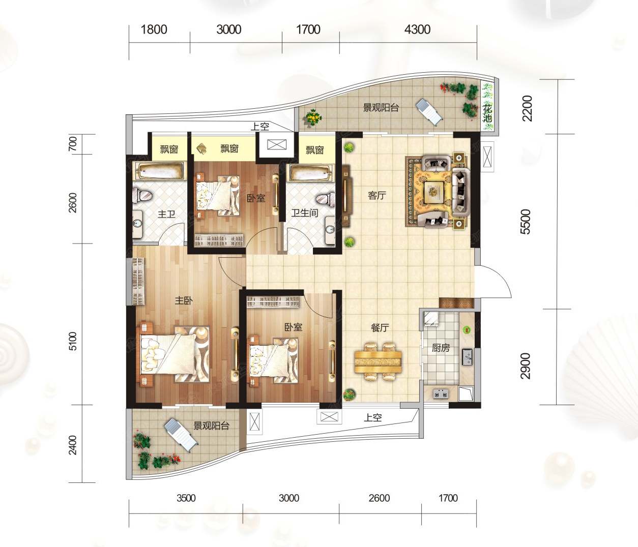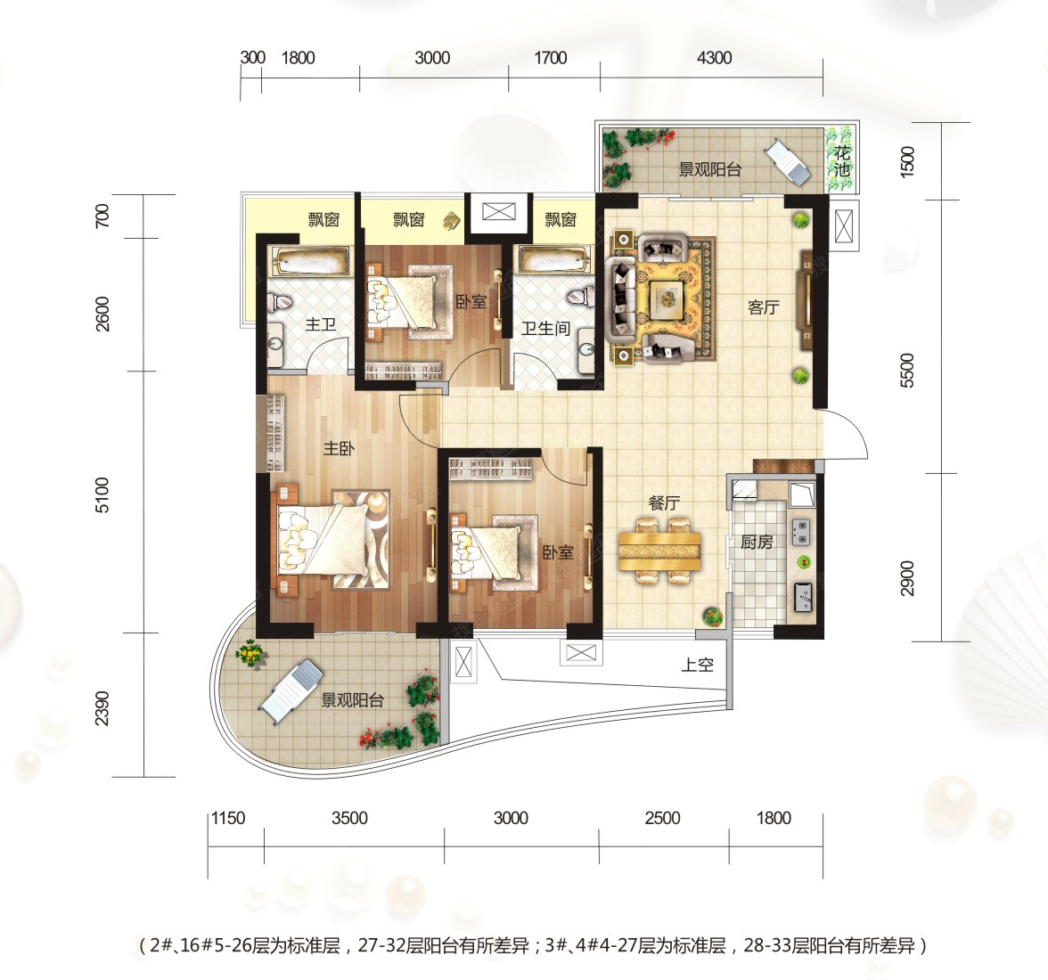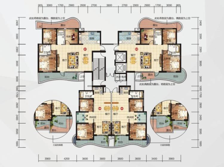 3室2厅2卫-1号楼建筑面积161.6平米三居