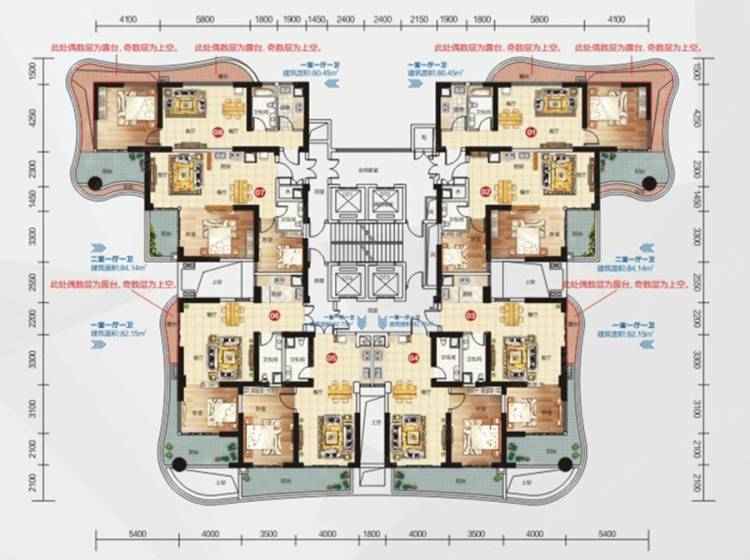 1室1厅1卫-1号楼建筑面积80.62平米一居