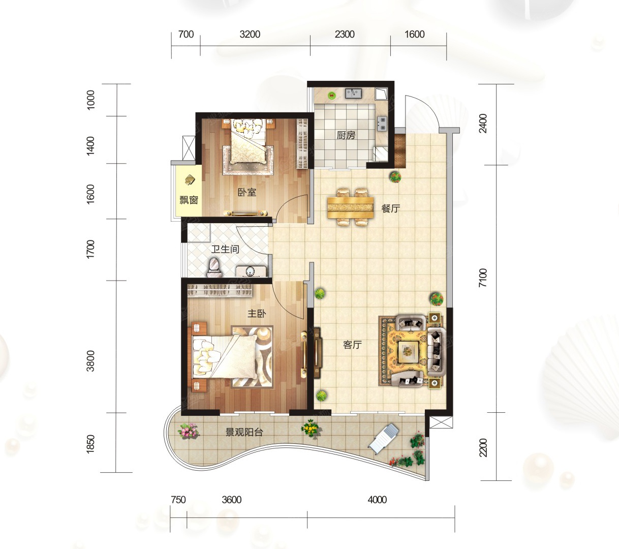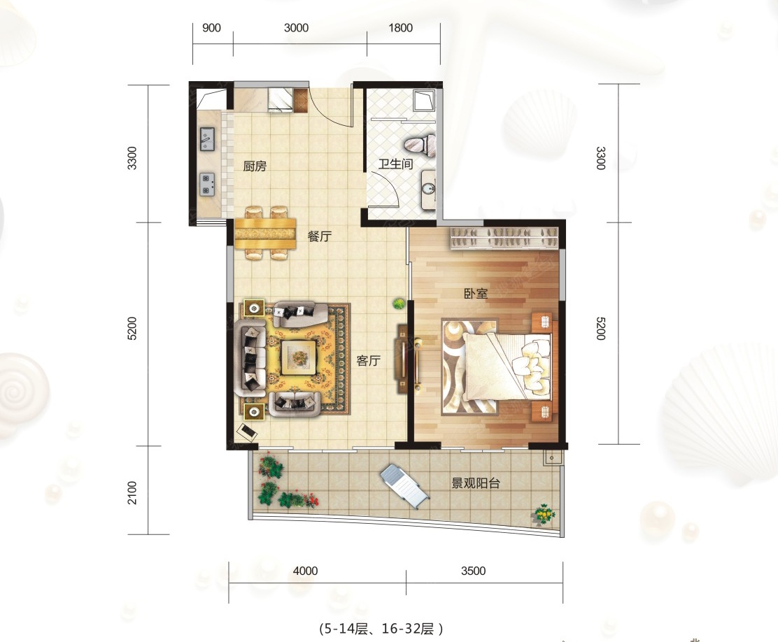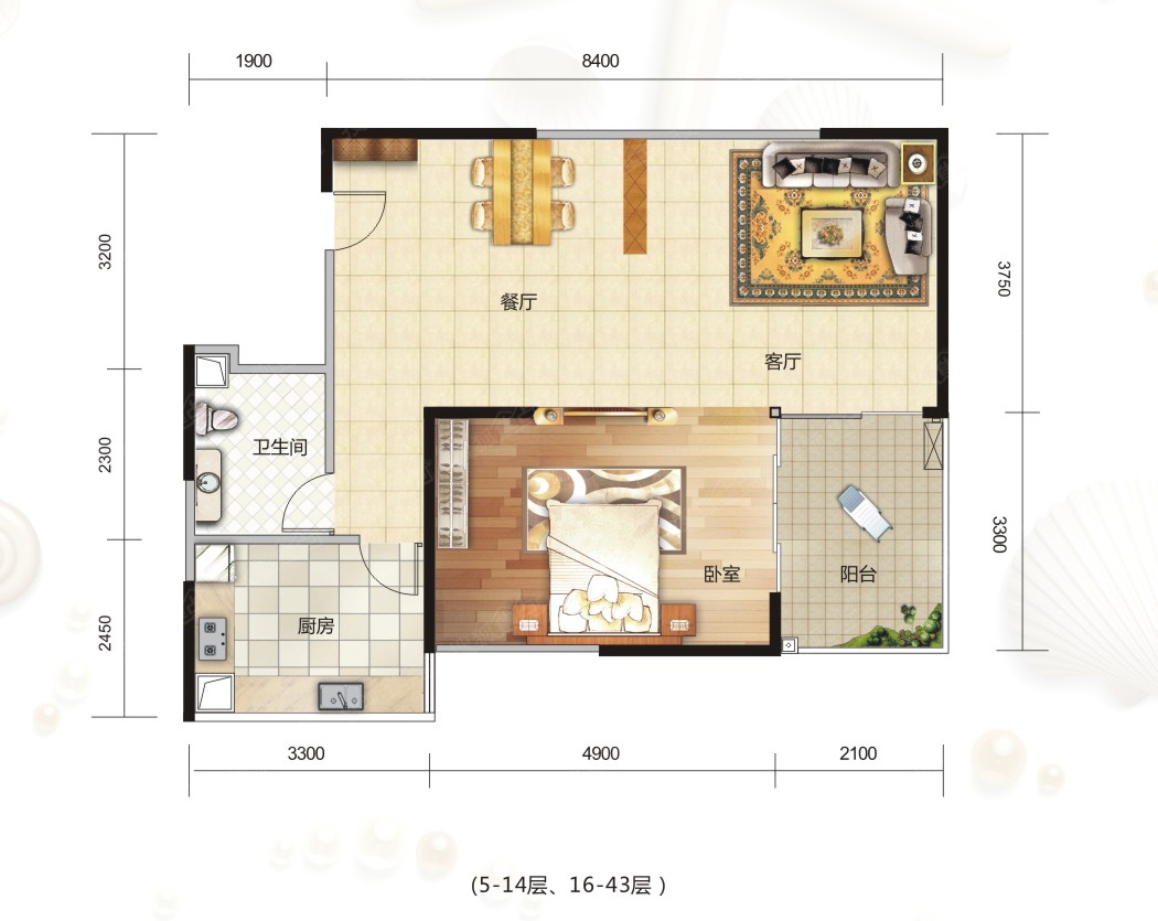 1室2厅1卫-1号楼建筑面积84.32平米一居