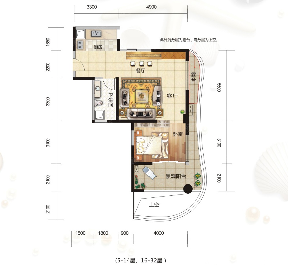 1室1厅1卫-1号楼建筑面积82.33平米一居