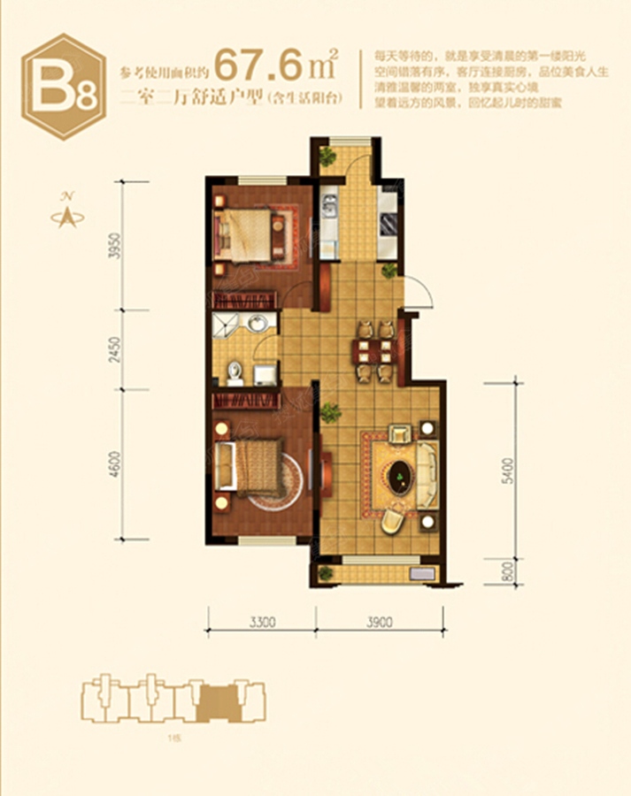 2室2厅1卫-1号楼B8
