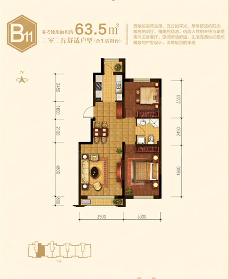 2室2厅1卫-1号楼B11