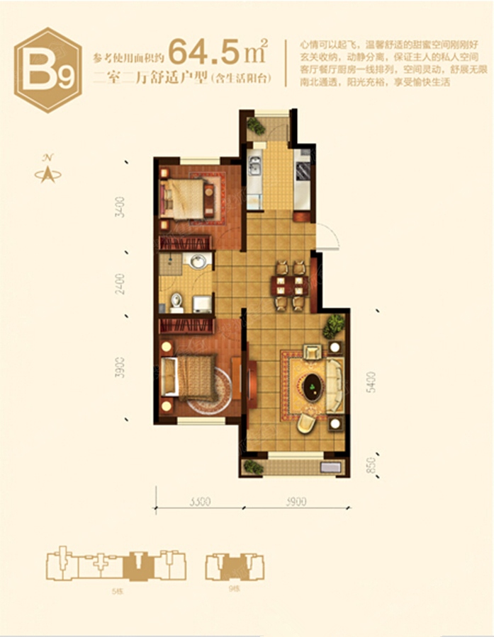 2室2厅1卫-5号楼/9号楼B9