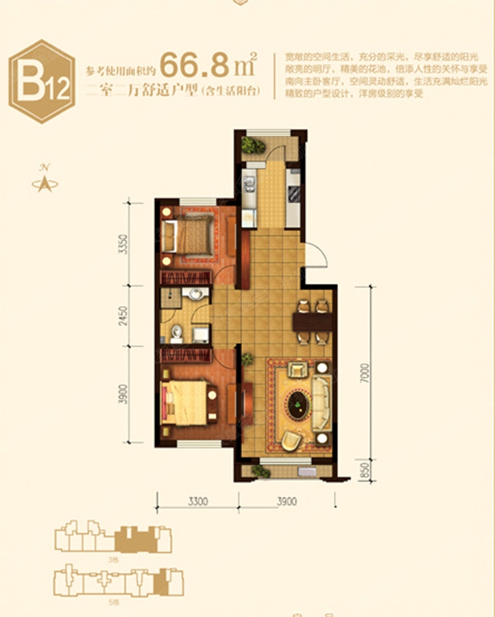 2室2厅1卫-3号楼/5号楼B12