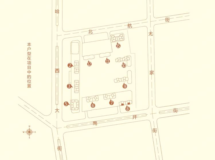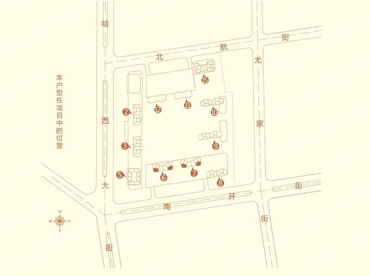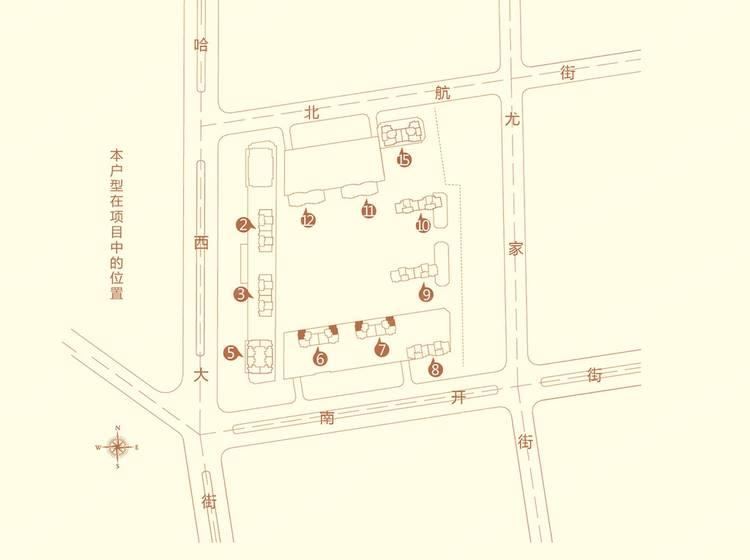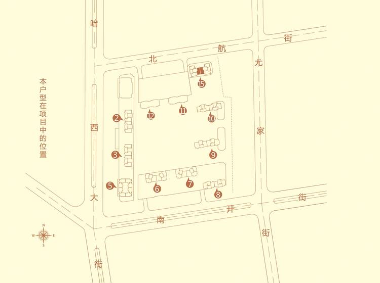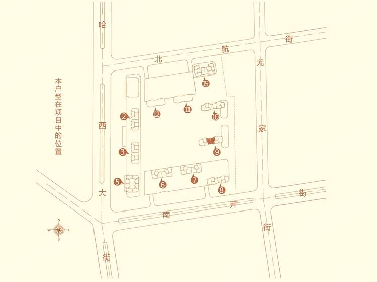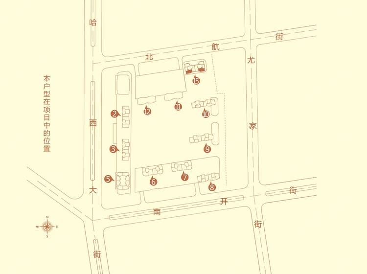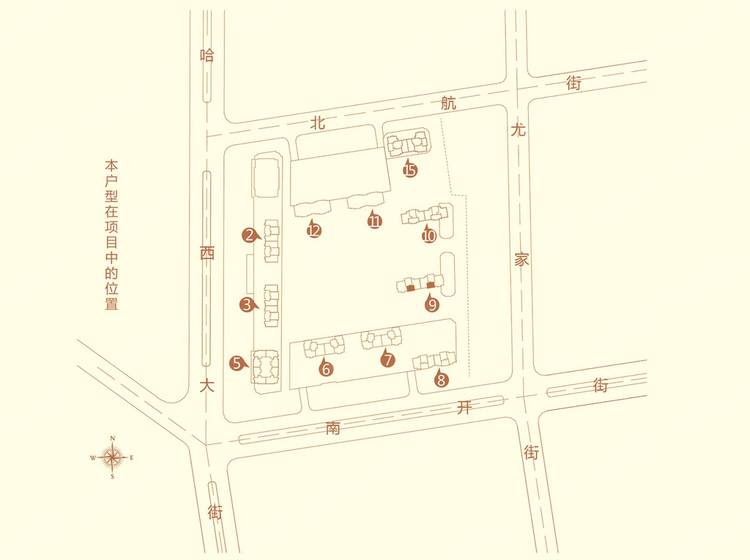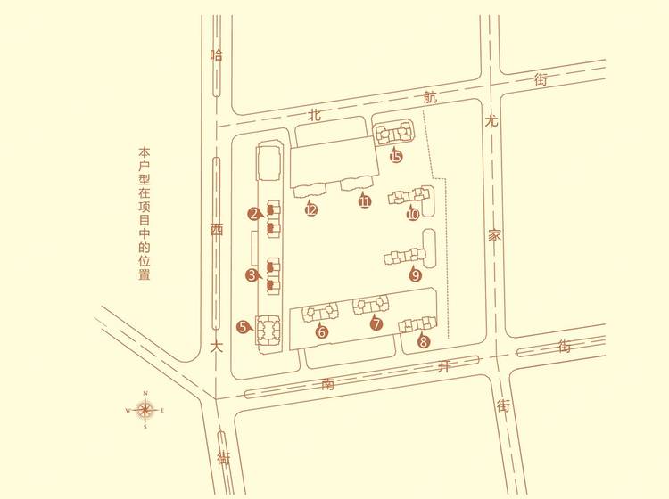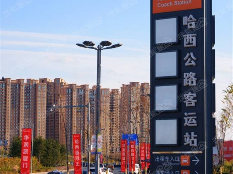 由中兴大道转入哈西大街,经过西典家园,前行约1200米,右侧为项目。