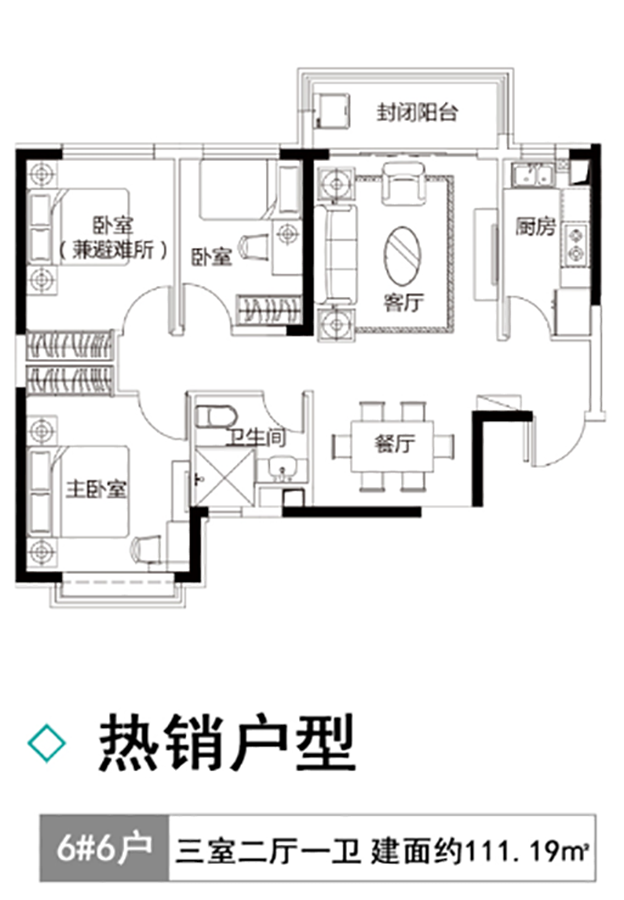 3室2厅1卫-6#6户建筑面积111.19㎡三居