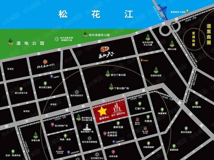 周边公园:哈尔滨音乐公园、金河公园、秀水公园、丁香公园