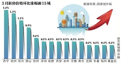 “今年3月份楼市表现要好于预期,部分城市甚至出现了抢房等现象,所以部分城市的房价并没有出现大幅度的降价,这也使得环比涨幅相对2月份出现了一定的扩大。”易居研究院智库中心研究总监严跃进说。