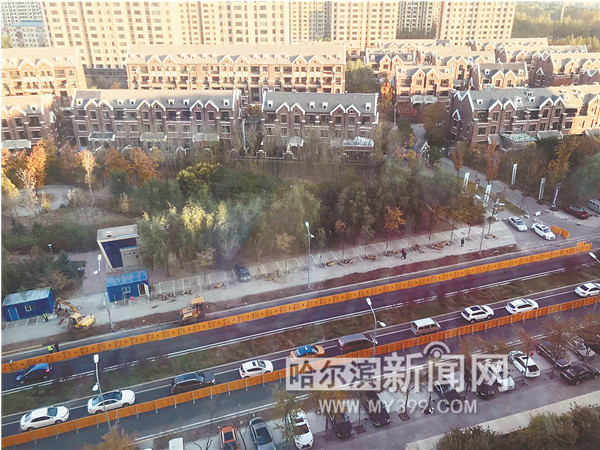 昨日8时许,记者来到群力第七大道看到,原群力第七大道为双向4车道,由于施工双向各占用一车道,现在仅能容许双向两车道行驶。
