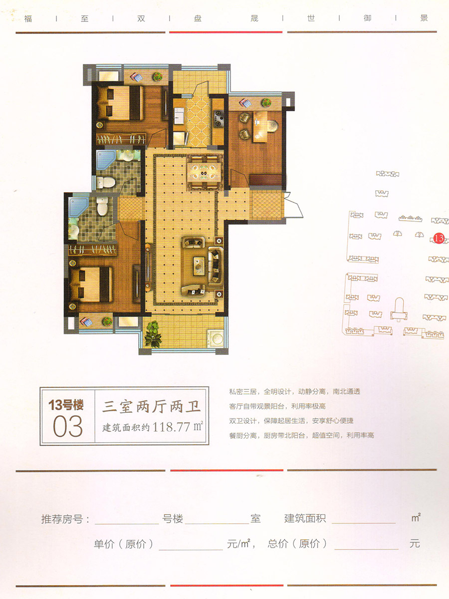在售 南北通透 户型方正 全明格局 客厅朝南 主卧朝南 餐客分离 开放厨房 主卧带卫
