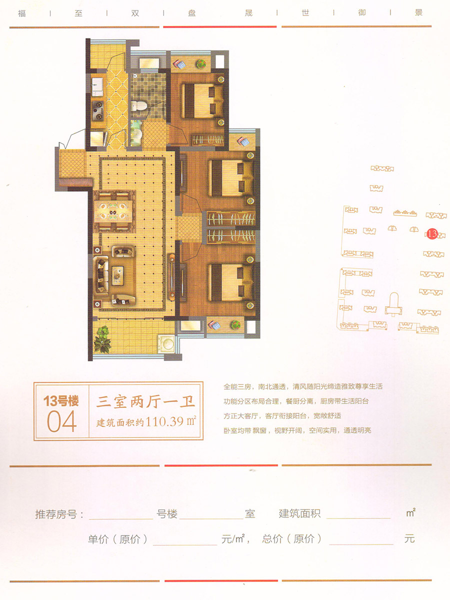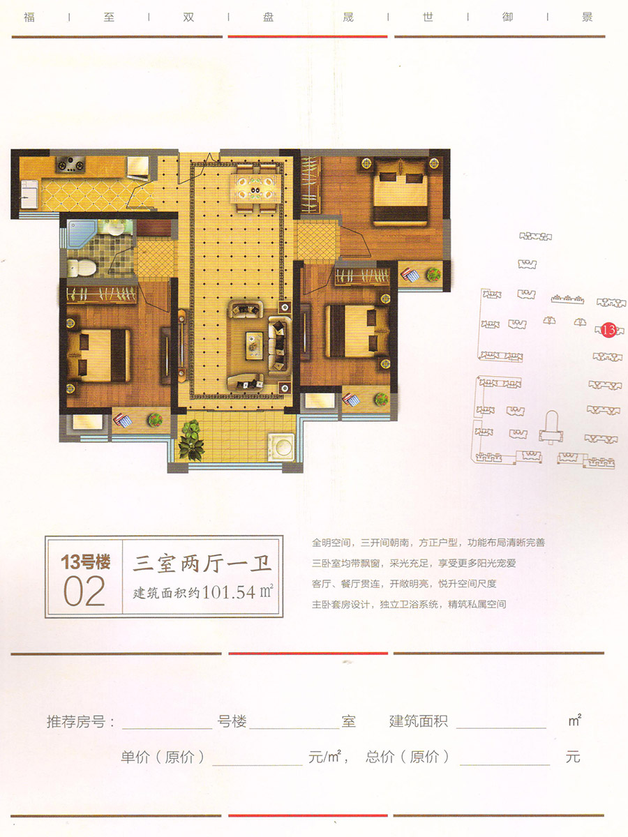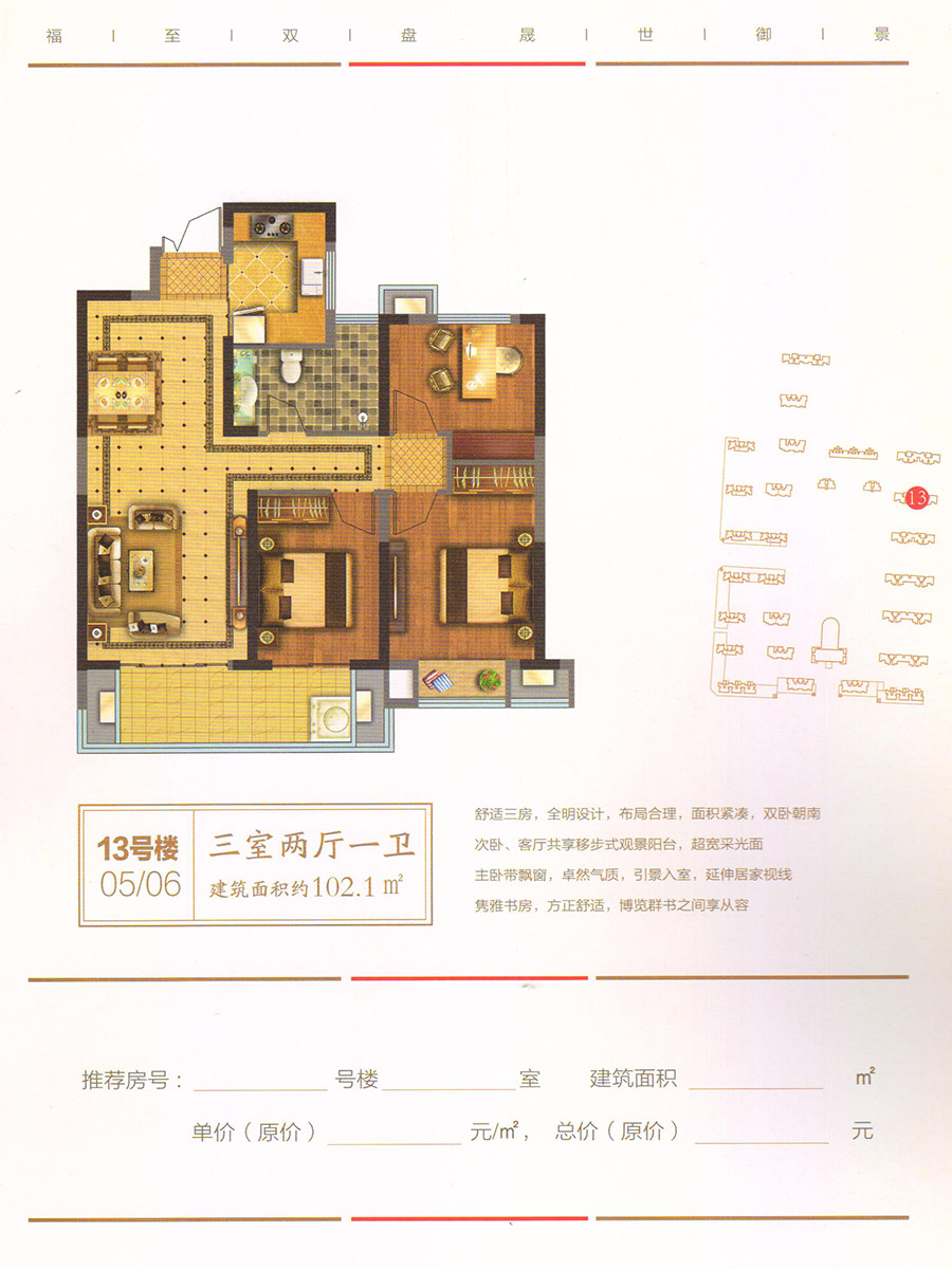 3室2厅1卫-13、21号楼05/06户型102.1平
