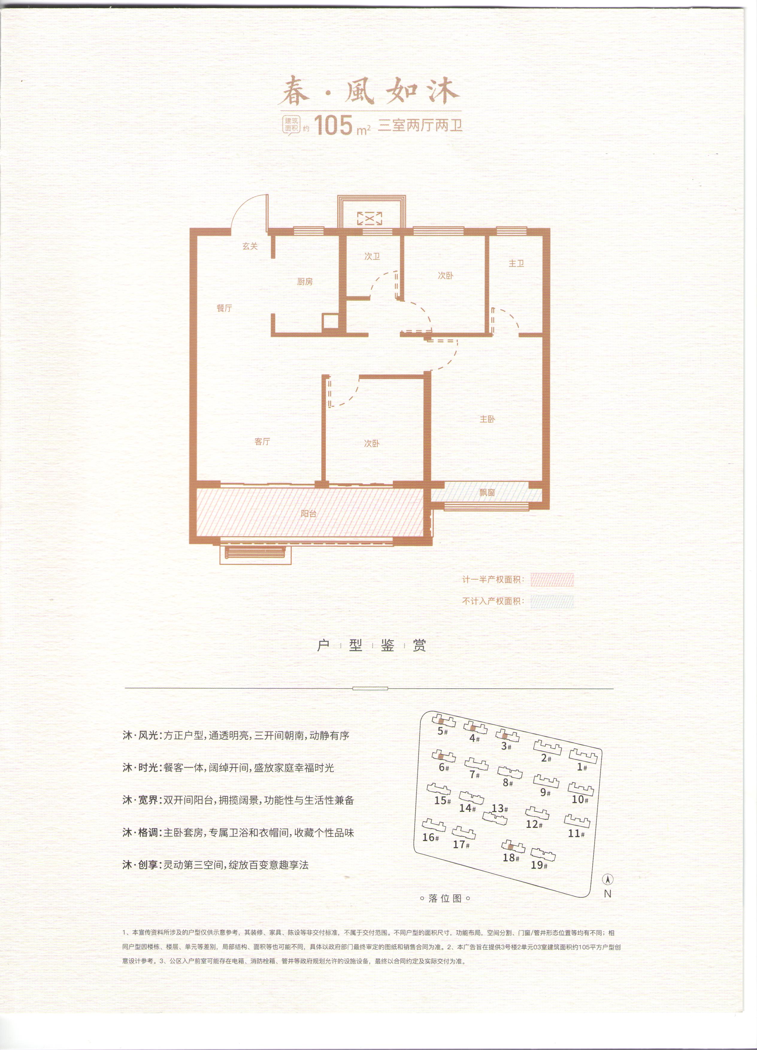 3室2厅2卫-春风南岸15号楼建筑面积约105㎡户型