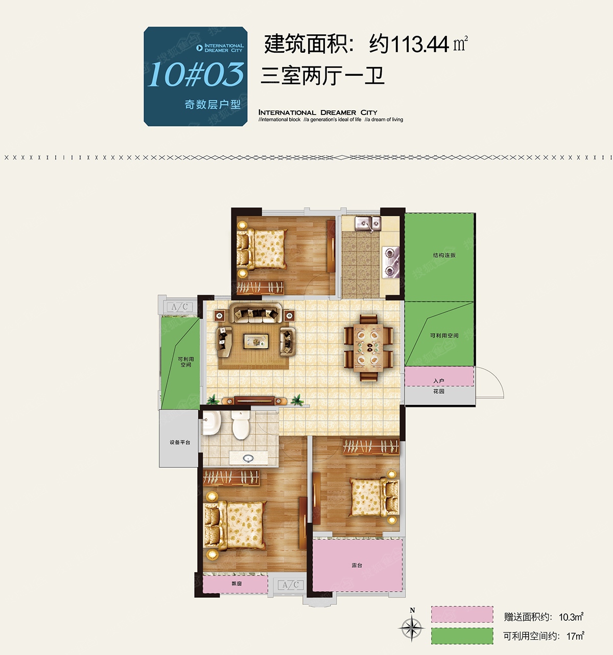 3室2厅1卫-113.44平米户型