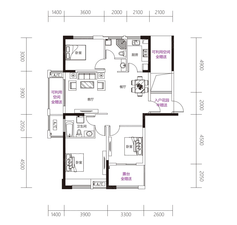 在售 户型方正 全明格局 客厅朝南
