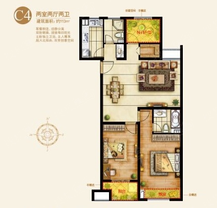 2室2厅2卫-两室两厅两卫113㎡