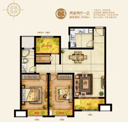 2室2厅1卫-两室两厅一卫108㎡
