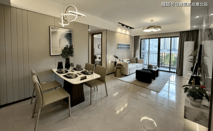 入门玄关处,是一处生活阳台,后期可打造成书房等多功能空间。客餐双厅是传统横厅设计,南北双阳台更加通透,6.8米的景观阳台可以成为日常休闲的好去处。