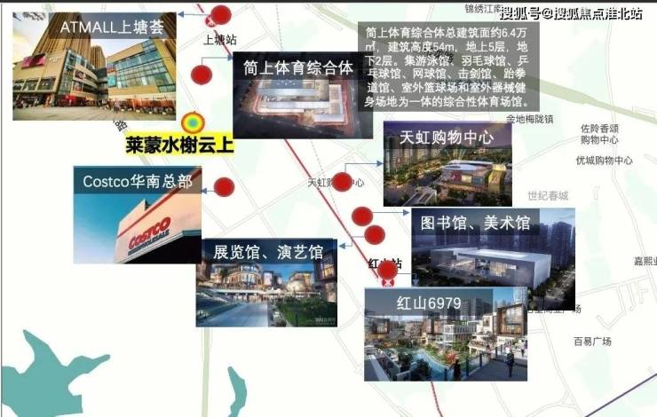 商圈文体:五馆三Mall,最具规模的工建资本投入—两公里范围内涵盖五馆三Mall,与赛事级简上综合体一路之隔,与Costco华南总部直线距离400m。