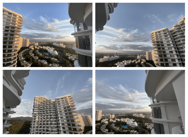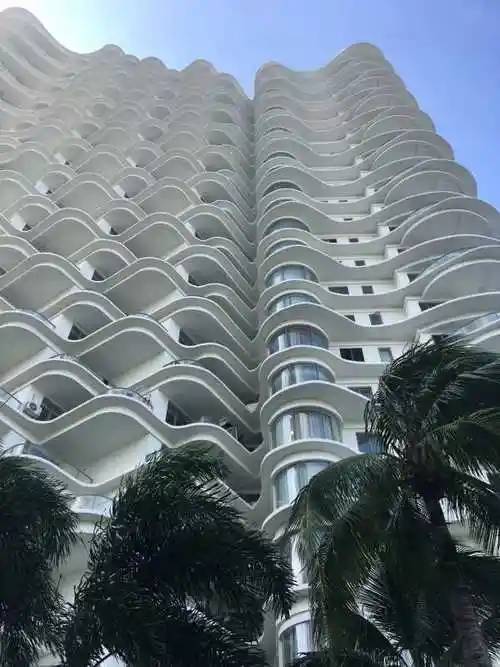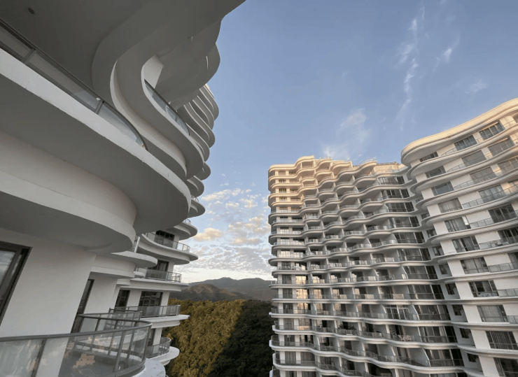 建筑形态:现代简约滨海风格,白色外观搭配流畅线条,高层有序排布成大组团院落,通高阳台与落地窗,部分户型可实现 90-270 度观海视角。
