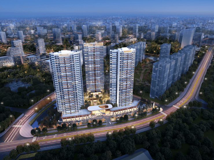 楼栋布局:共 11 栋高层,围合式布局,二期瑞府楼间距达 50 米,3 米层高,采光通风与私密性较好。