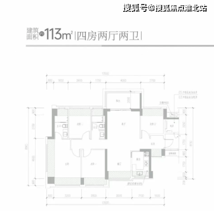113㎡四房两厅两卫:竖厅南北通透格局,客厅 4 米开间,进门独立玄关,4 个卧室宽度分别为 4 米、2.8 米、2.7 米、2.6 米,U 型厨房,公卫三段式分离设计,得房率约 95%,阳台主朝西北或东北向,可看科学公园景观。