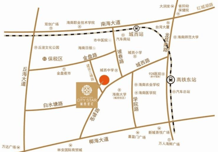 项目地处椰城腹地,三维立体交通网覆盖。椰海大道、南海大道、龙昆南路、丘海大道、绕城高速连接市区内外。项目出发十分钟内可达海口汽车南站,海口火车东站;半小时内可达美兰国际机场。