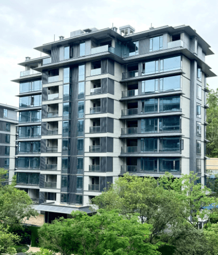 建筑设计独特:为第四代垂直森林居所,打造了 5.4 米复式山水洋房,3.3 米观湖平层,窗墙比最高达 44%,让室内空间更通透,还能让热带植物在空中迎风起舞,营造出城市森林花园的效果。