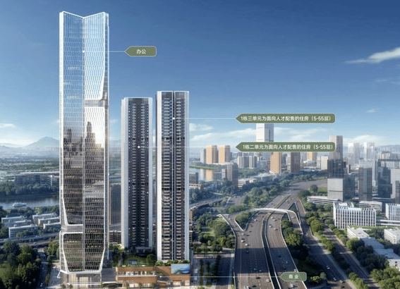 规模:占地约 1.3 万㎡,总建面约 20.3 万㎡;3 栋超高层(2 栋人才房 + 1 栋公租房),可售人才房 960 套(70㎡两房 768 套、90㎡三房 192 套)