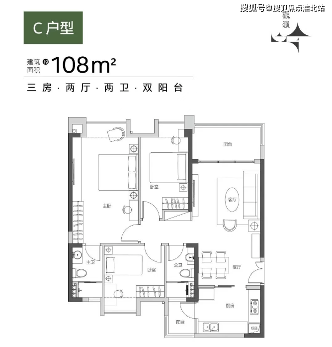 89㎡三房:三开间朝南,赠送入户花园,LDKB一体化设计(客厅、餐厅、厨房、阳台连通),空间利用率高达85%。
