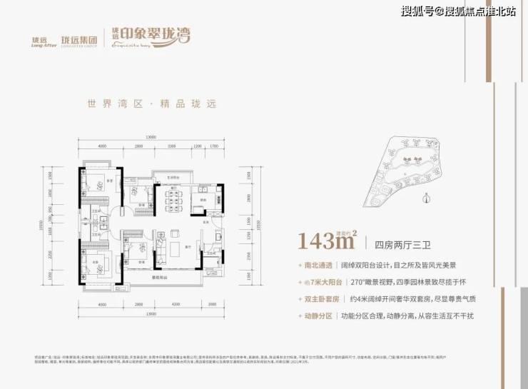 珑远·印象翠珑湾为住宅与商业一体化的综合性健康社区,囊括洋房、商办等多类型产品,打造建面约95-143m²全南向三/四房,其中143m²户型做到了市场上非常难得的双主卧四房三卫设计,满足三孩时代所需。还规划了约4200²情景式商业街区,出门即享繁华。