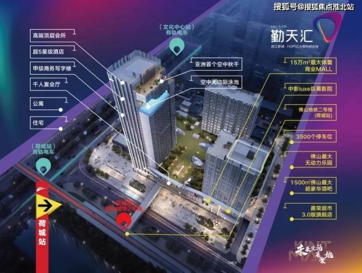 勤天汇,是由广州市勤天地产集团有限公司倾力打造的60万㎡HOPSCA城市综合体、高明新地标。项目位于西江新城,雄踞城市规划的现代商圈心脏地带,拥有“文化中心”及“荷城”两个有轨电车站(建设中),佛山地铁2号线“荷城站”(规划建设中)更是与勤天汇商业MALL无缝衔接,高明地铁口上商业MALL,是高明人出入新旧两区,切换广佛双城的城市交通枢纽带。勤天汇以60万㎡大体量的城市综合体航母、150米的超高层建筑,集15万㎡城市级商业MALL、2.5万㎡风情商业街、星级城市酒店、商务写字楼、住宅、公寓等多元化业态于一体,打造咫尺繁华都市圈,建设粤港澳大湾区西部交通枢纽中心会客厅,开启高明城市的商业新起点。