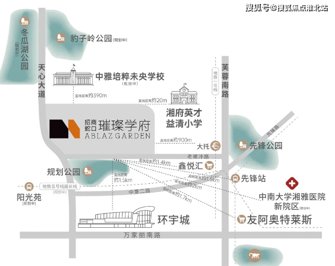 教育配套:业主子女按政策可配套入读天心区教育局直属公办幼儿园(位于小区红线内,在建中)及中雅培粹未央学校(直线距离约 370 米,规划中),符合入学条件的业主子女还可入读湘府英才益清小学(一路之隔,已开学)。