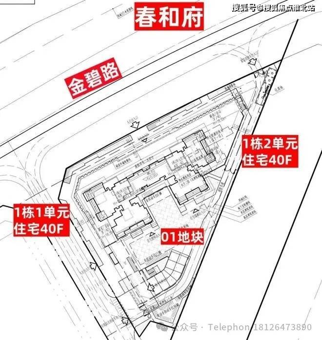 01地块:总占地面积约0.51万㎡,总建筑面积约5万㎡,计容建筑面积约3.42万㎡,容积率6.32,绿化率30%,共由2栋40层住宅组成,分别是1栋1/2单元,商业面积3100㎡。