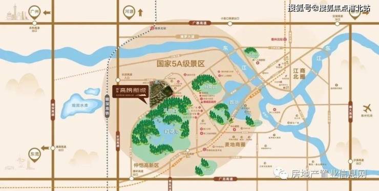 项目位居惠州西部传统文化生态区,片区定位惠州辐射华南的绿色生态社区,未来将建设为集新兴商业、文化、教育、居住、社交、休闲中心等功能于一体的综合性片区,发挥向惠州进行经济辐射的功能。目前,片区内拥有极其丰富的自然稀缺资源,以600万平方米的红花湖及国家4A极高榜山森林公园为代表,片区自然资源极其丰富。
