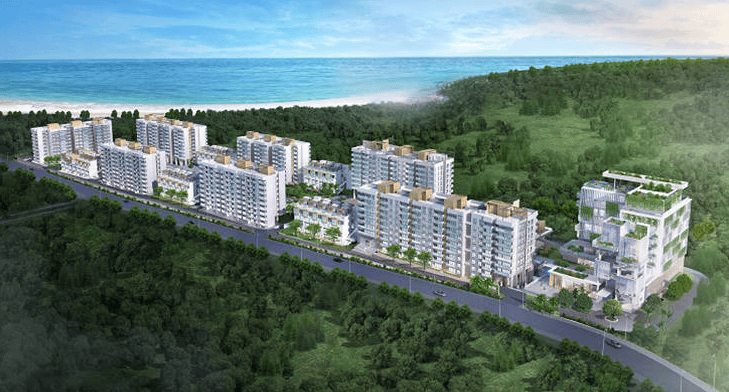 基本信息:项目总占地 70 亩,容积率 1.8,总建筑面积(含地下)约 10 万㎡,绿地率为 35%,建筑密度 35%,建筑高度均不超过 30 米,停车位 479 个。由 7 栋小高层、5 栋叠拼别墅、1 栋概念联排别墅及 1 栋精品酒店组成。其开发商是海南大观千舍投资有限公司