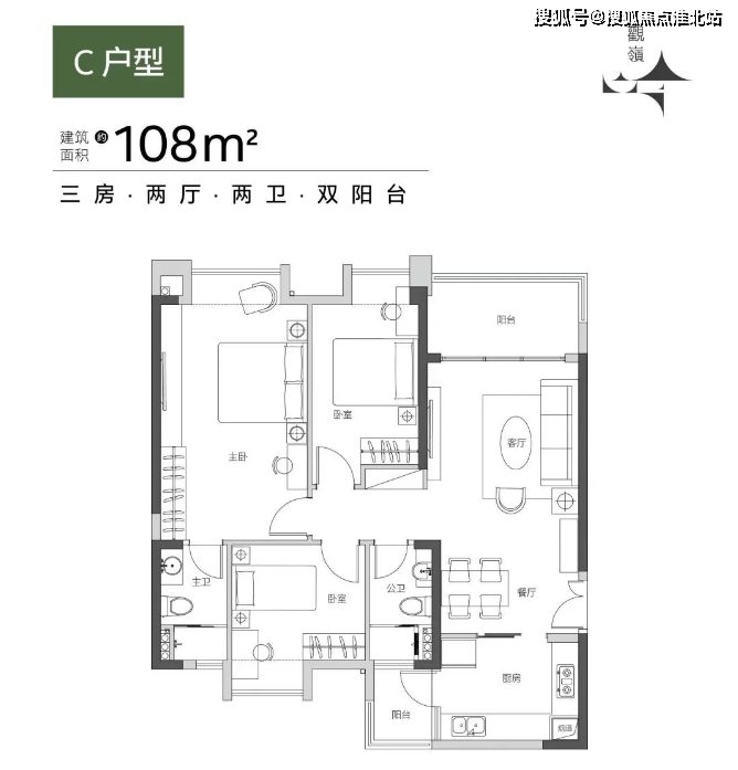 89㎡三房:三开间朝南,赠送入户花园,LDKB一体化设计(客厅、餐厅、厨房、阳台连通),空间利用率高达85%。