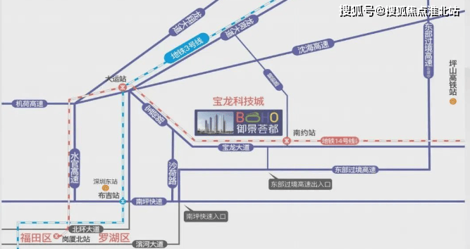 交通配套:项目直连地铁 14 号线南约站,2 站到大运、9 站到福田中心,未来还可享三地铁交汇利好,规划中的地铁 23 号线和 31 号线也将在此交汇;沈海高速和东部过境高速南北贯穿,还有 M303 路、M304 路等多条公交线路,可快速通达深圳中心城区、香港及周边城市。