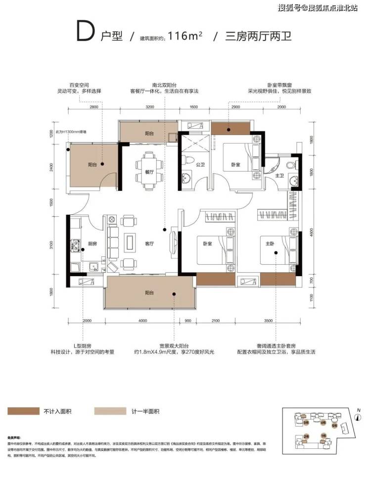 D户型:约116㎡ 阔绰3+1房2厅2卫2阳台