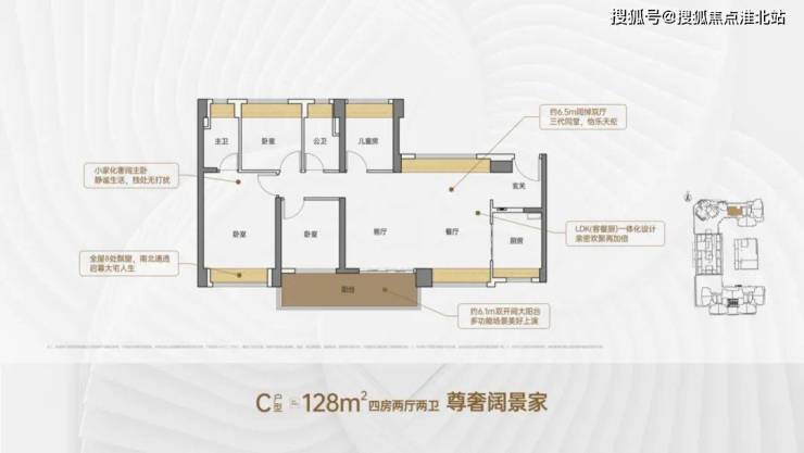 C户型-约128㎡4房2厅2卫:户型分布在5单元,横厅南北通透格局。