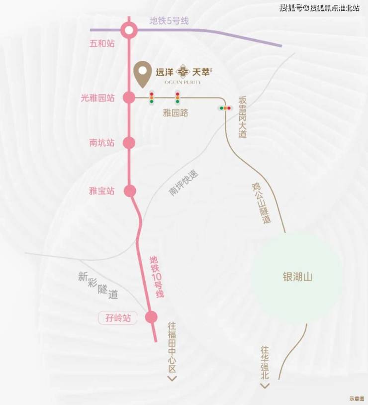 地铁配套:远洋天萃家门口就是10号地铁线“光雅园站”B出口,小区地下室直通地铁站,1站到五和枢纽站可换乘5号地铁线/深大城际,3站可到龙华深圳北站,3站到福田、4站到南山。