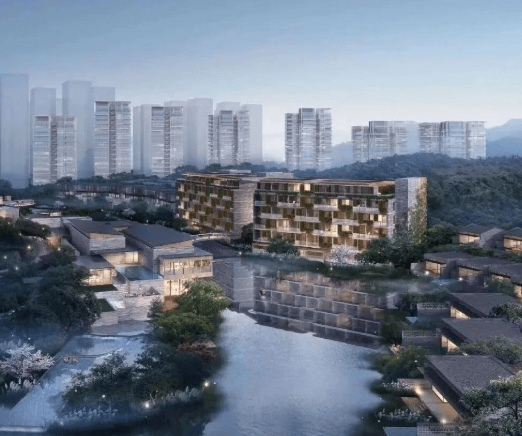 园林景观:园林设计从传统岭南园林汲取灵感,营造隐居自然的氛围,打造多处落客庭院,并引入红砂岩等岭南建筑元素。