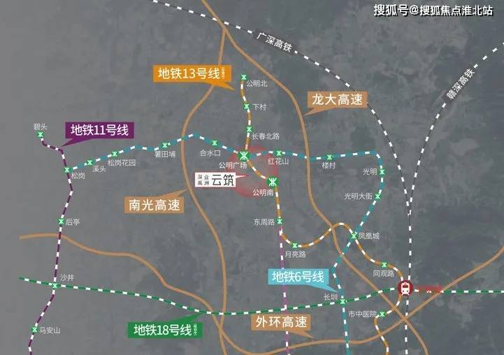 双地铁:6号线公明广场站约1.1km,13号线公明南站(在建)约700m,创享城芯生活。