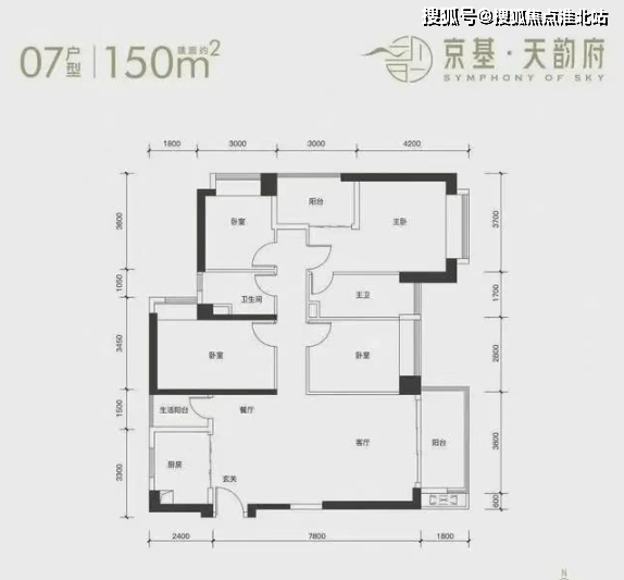 150㎡的 4 房 2 厅 2 卫:竖厅格局,动静分区,LDKB 一体化设计,客厅 4.4 米开间,主卧大套房设计,厨房带一个生活阳台,得房率 87.42%(包含赠送),阳台进深 1.8 米,朝东向,高层可看深圳水库景观。