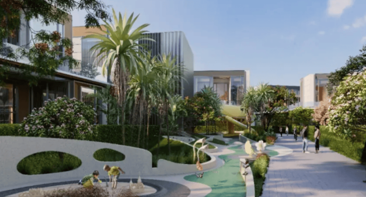 内部:开放式沉浸式热带商业街区,组团商业 + 临街商铺 + 庭院会所结合,预留外摆空间,适合高端餐饮、文创体验、生活美学业态