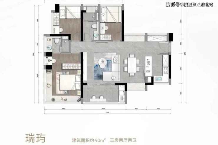 松湖瑞府推出建面约75-118平的三至四房,面积段设置虽偏向刚需,但楼市君发现,有部分改善户型设计理念被下放至该项目内。