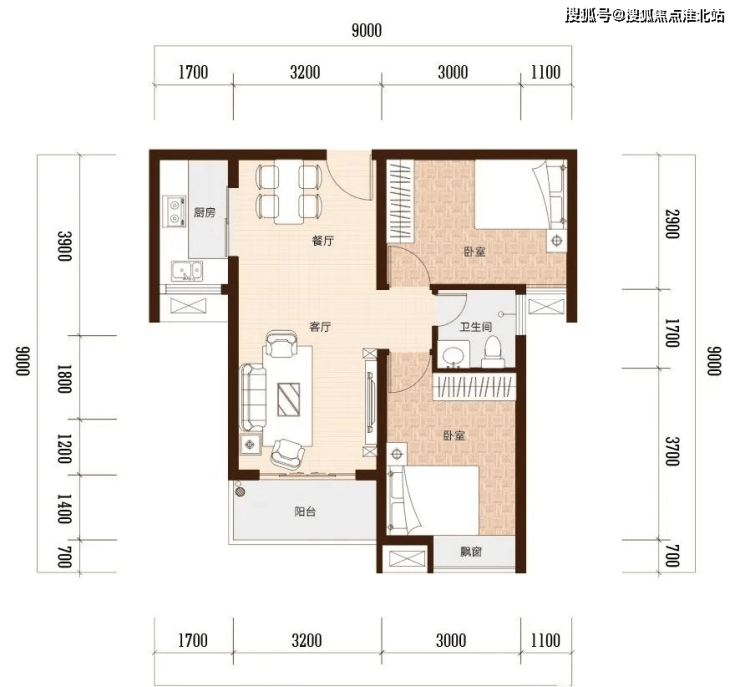 D建面约 84㎡ 两室两厅一卫